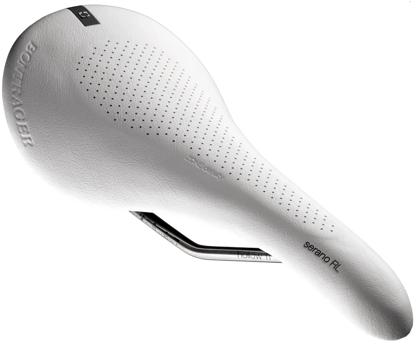 Modeled after the classic saddles of days past, Bontrager's Serano RL is a comfy, lightweight saddle for road or mountain. Bontrager takes fit and comfort seriously, so the Serano sports Size Specific Curvature, meaning the curve of each saddle is designed specific to its width. Zone Density Padding places multi-density padding in strategic areas for optimal comfort and performance. That, along with the inForm BioDynamics, optimizes your natural movement for better efficiency. Hollow Ti rails and a carbon shell keep the weight down, too.